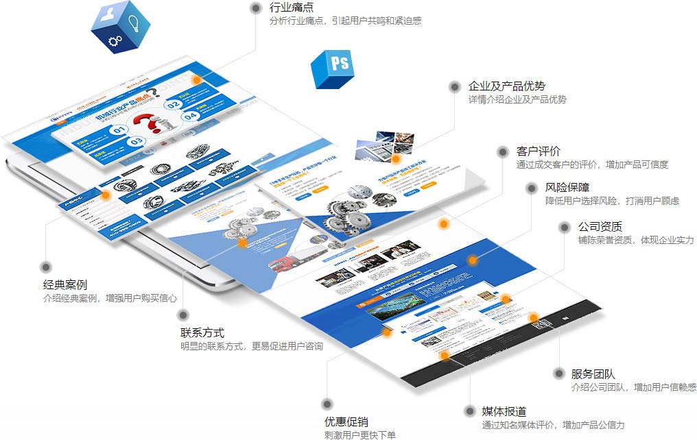 产品着陆页必须具备十大元素(客户痛点、产品介绍、产品优势、经典案例、客户评价、媒体评价、公司资质、服务团队...)如果还是图配文字,那注定你的广告费要石沉大海。